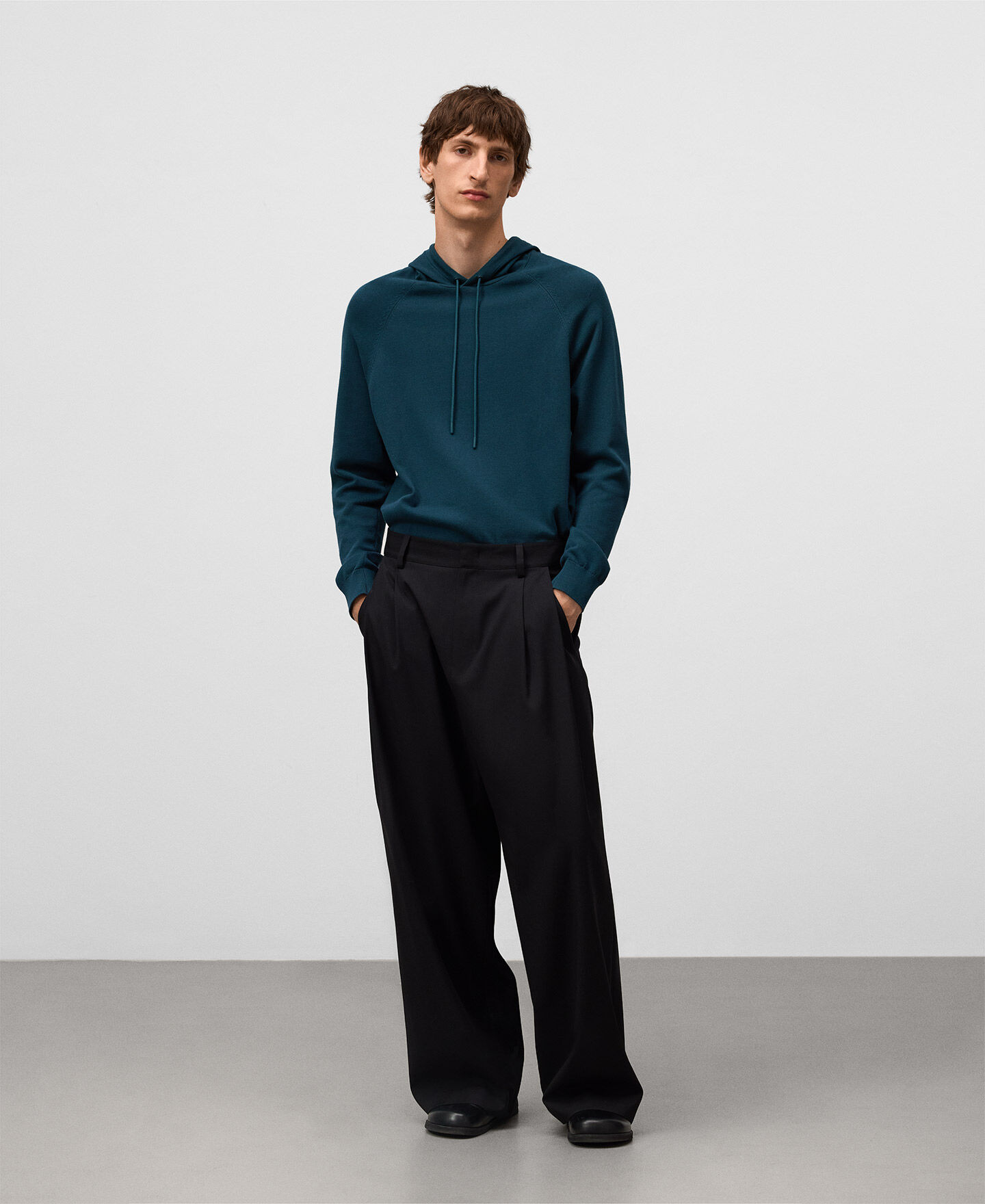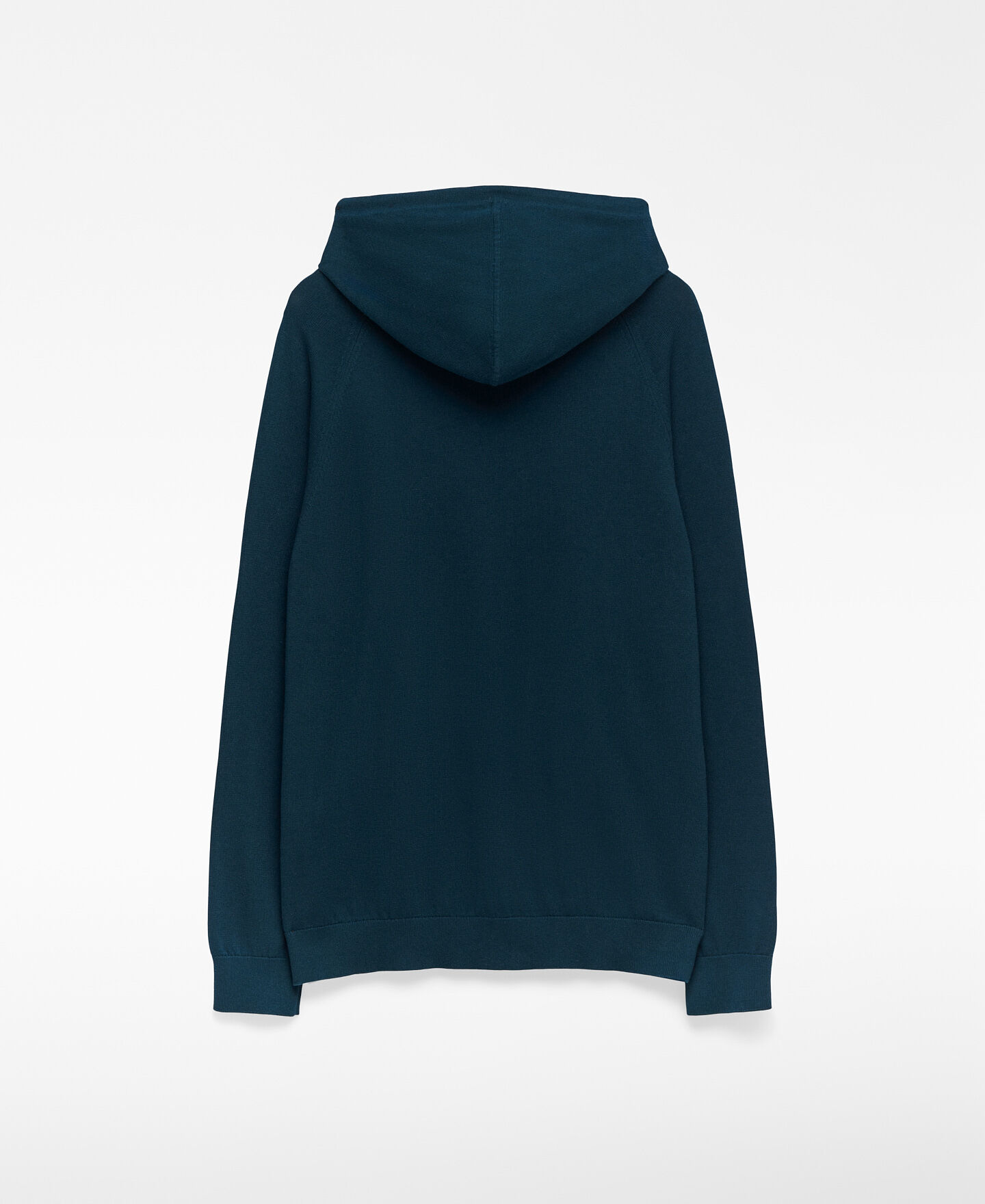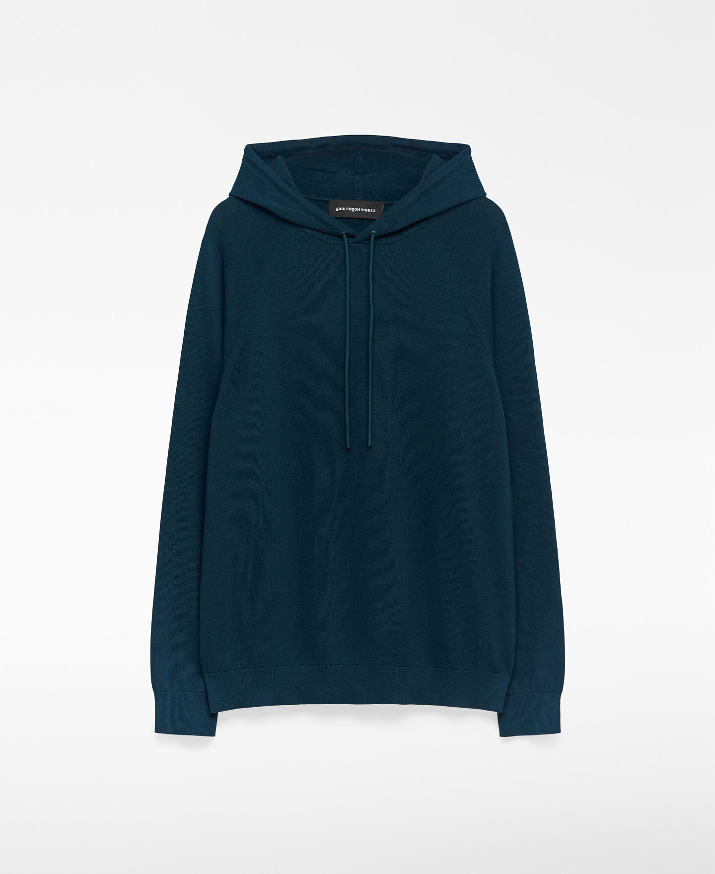 Sudadera punto algodón orgánico hombre. Capucha con cordón ajustable. Manga raglán. Detalle de menguados en sisa. Remates en canalé.
