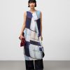 Vestido crinkle estampado poliéster reciclado mujer. Silueta redondeada. Cuello caja. Manga sisa. Delantero cruzado con cierre botón. Largo midi.