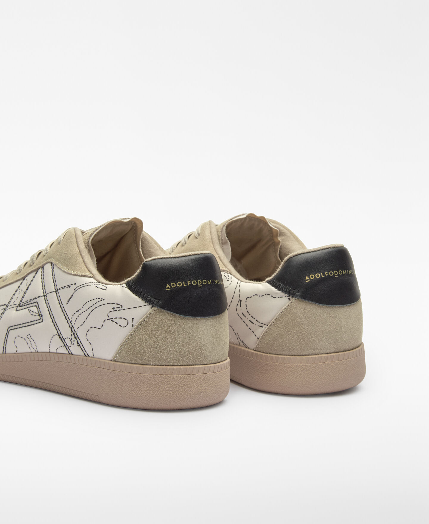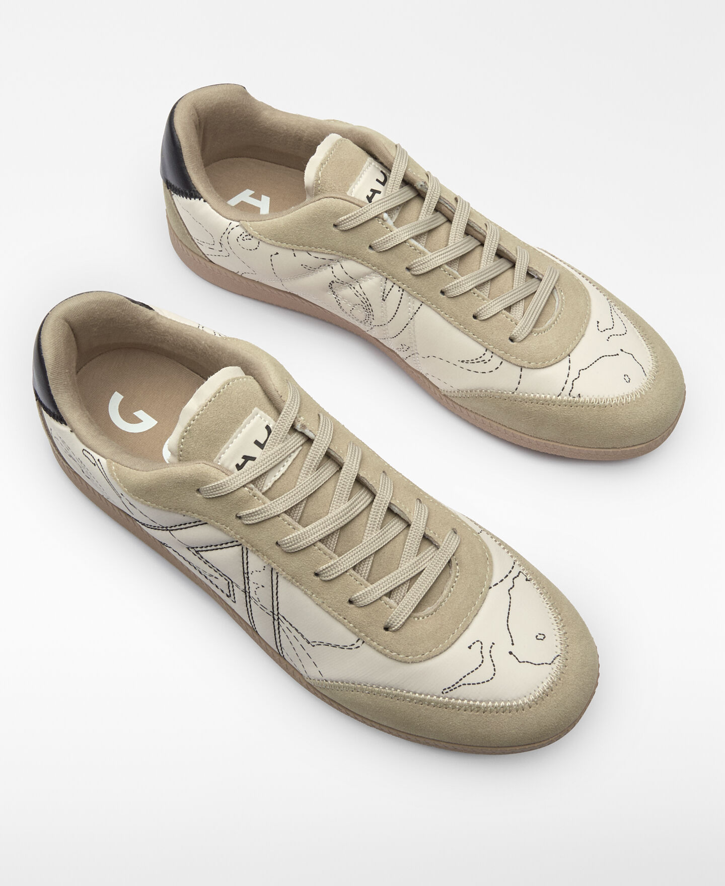 Zapatilla piel y ante hombre. Maxi logo pespunteado. Pespuntes decorativos. Cierre cordones. Plantilla Memory Foam. Suela antideslizante. Logo grabado en talón.