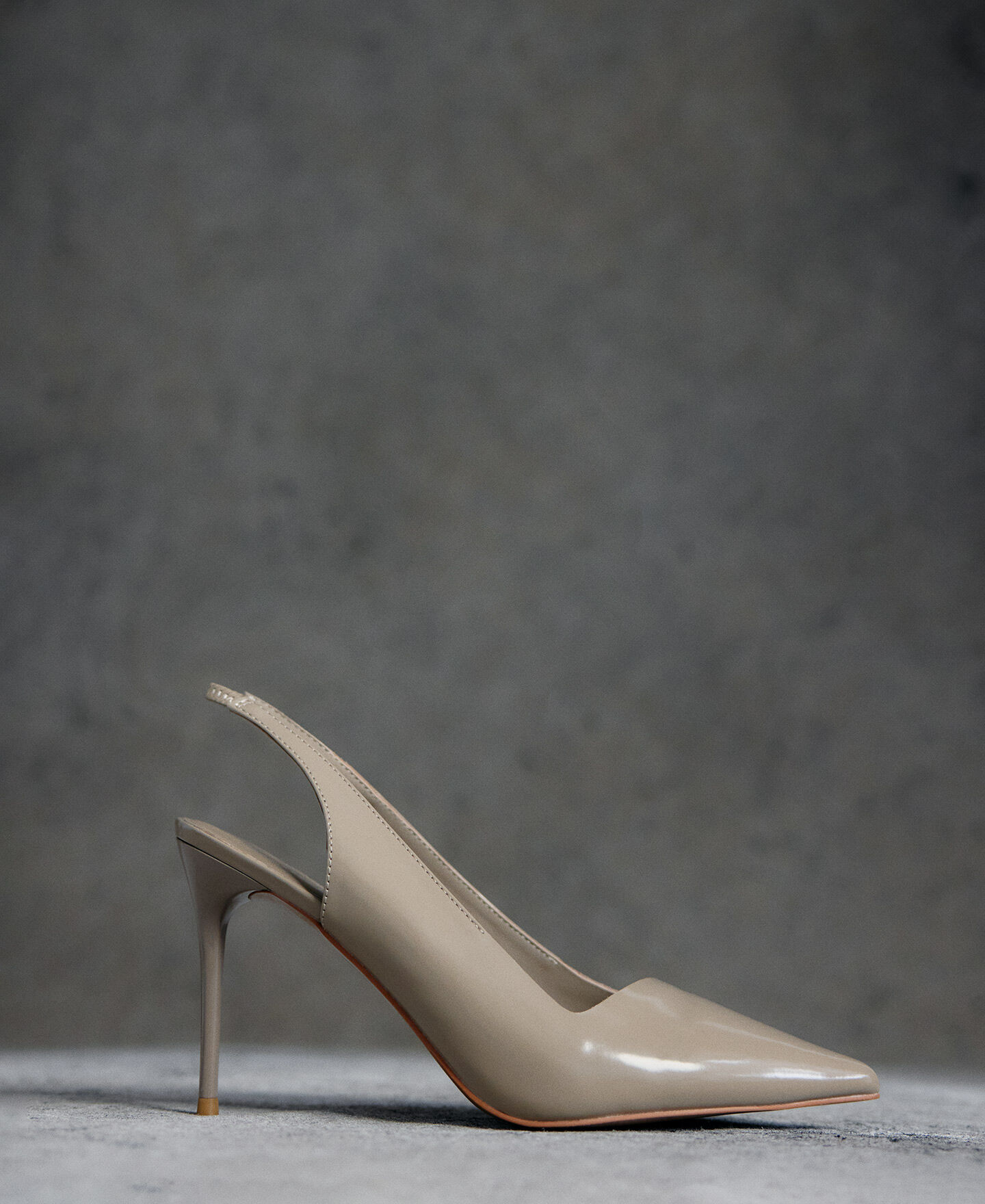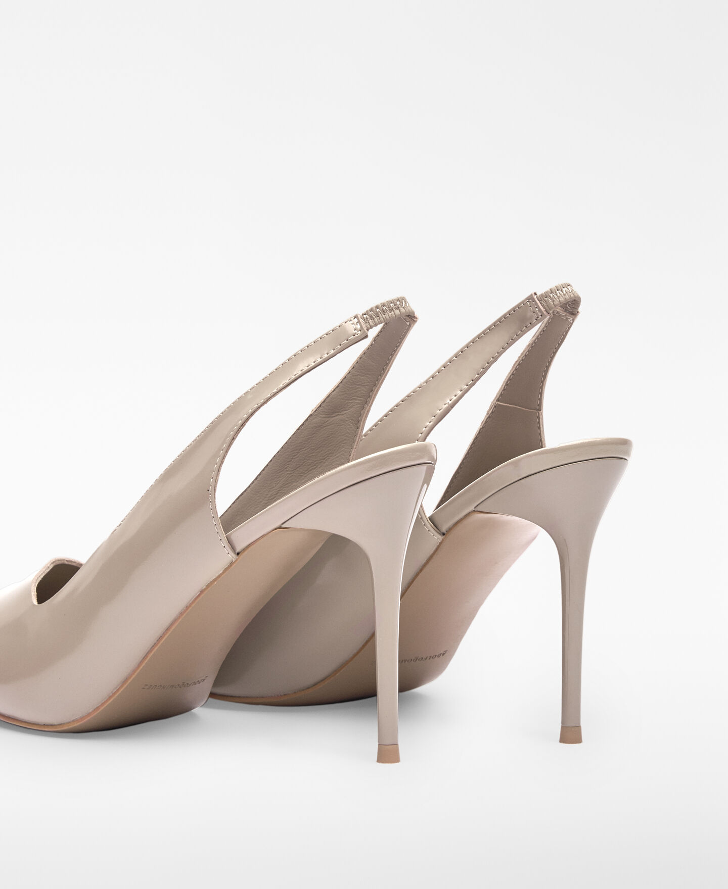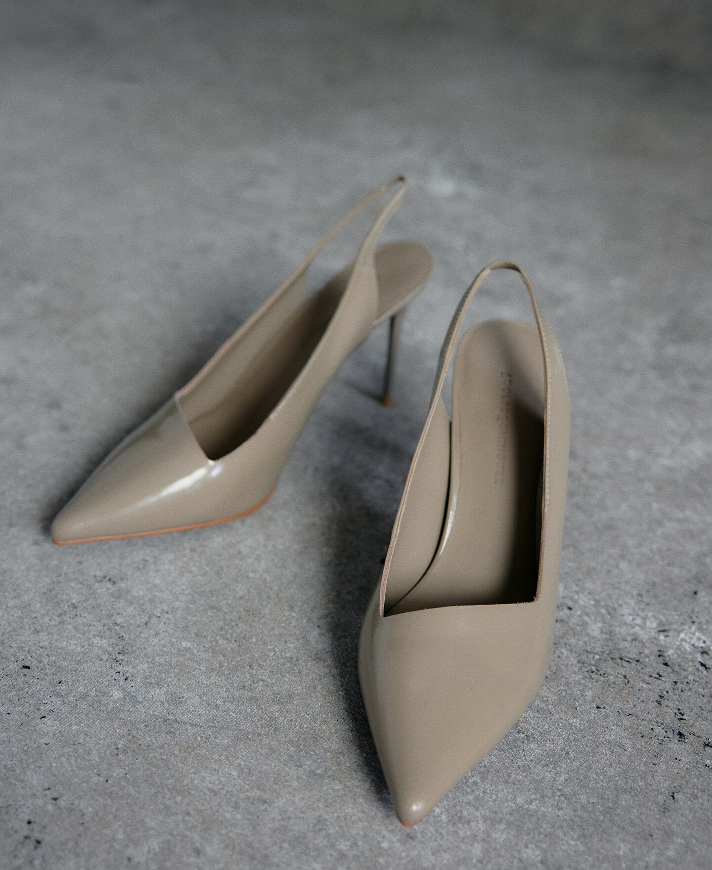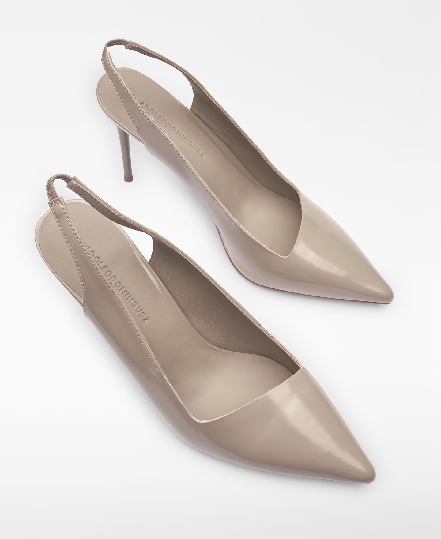 Zapato tacón destalonado piel responsable mujer. Puntera en pico. Escote asimétrico. Goma elástica en talonera. Plantilla Memory Foam. Suela antideslizante.